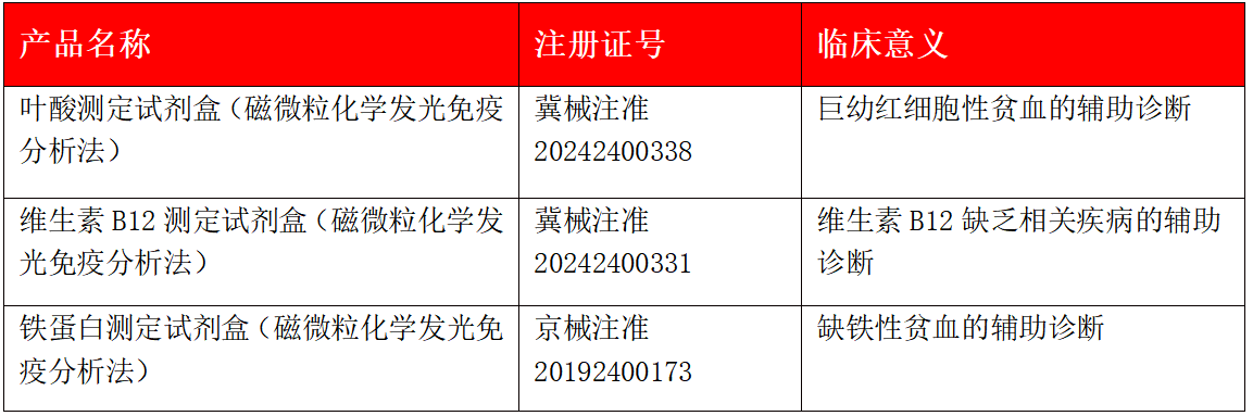 表1.(九游J9)真人游戲第一品牌生物貧血三項(xiàng)產(chǎn)品信息