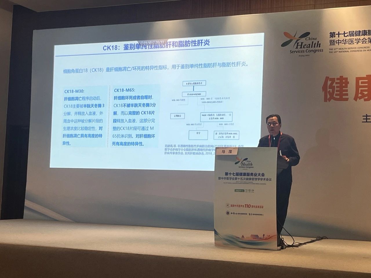 北京航天總醫(yī)院體檢中心張晗教授在專題講座中指出,細(xì)胞角蛋白18(CK18)片段在代謝相關(guān)脂肪性肝病MAFLD的早期篩查、疾病進(jìn)展監(jiān)測和治療效果評估中具有重要價(jià)值。全球約有16.6億MAFLD患者,中國城市人口中MAFLD患病率為28.77%。CK18-M30和M65片段與肝細(xì)胞凋亡和壞死相關(guān),其水平隨疾病嚴(yán)重程度升高。CK18在診斷MASH(代謝相關(guān)脂肪性肝炎)方面的性能優(yōu)于傳統(tǒng)肝酶指標(biāo),是目前最認(rèn)可的MASH輔助診斷指標(biāo)。張晗教授強(qiáng)調(diào),多學(xué)科協(xié)作管理是MAFLD治療的關(guān)鍵,通過綜合管理和個(gè)性化治療,可以有效改善患者的預(yù)后。