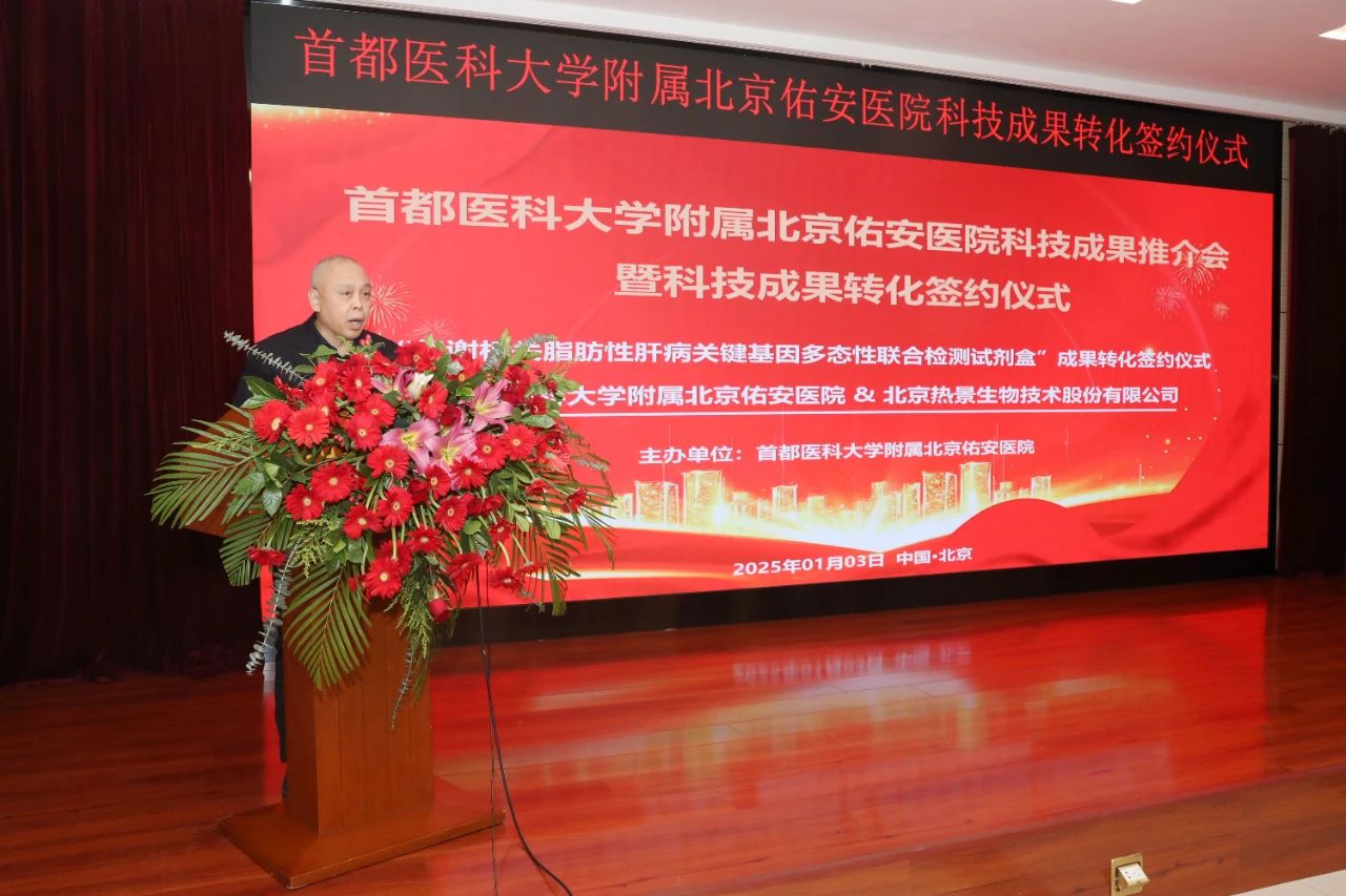 為進(jìn)一步推動醫(yī)學(xué)創(chuàng)新成果高效轉(zhuǎn)移轉(zhuǎn)化,加強(qiáng)醫(yī)企間緊密協(xié)作融合,2025年1月3日北京佑安醫(yī)院成功舉辦新年首場科技成果推介會暨項目簽約儀式。此次會議由科技成果轉(zhuǎn)化中心副主任粟斌教授主持,馬迎民院長、張永宏副院長、胡中杰副院長、肝病研究所李兵輝所長、前期遞交科技成果轉(zhuǎn)化需求的科室主任及項目負(fù)責(zé)人蒞臨指導(dǎo)。同時,簽約方北京(九游J9)真人游戲第一品牌生物技術(shù)股份有限公司董事長林長青先生、副總經(jīng)理揭小池女士、醫(yī)學(xué)市場中心總監(jiān)陳芳女士及大興區(qū)生物醫(yī)藥產(chǎn)業(yè)基地的代表們受邀出席,共同見證我院優(yōu)質(zhì)成果轉(zhuǎn)化簽約以及更多創(chuàng)新成果的精彩發(fā)布。