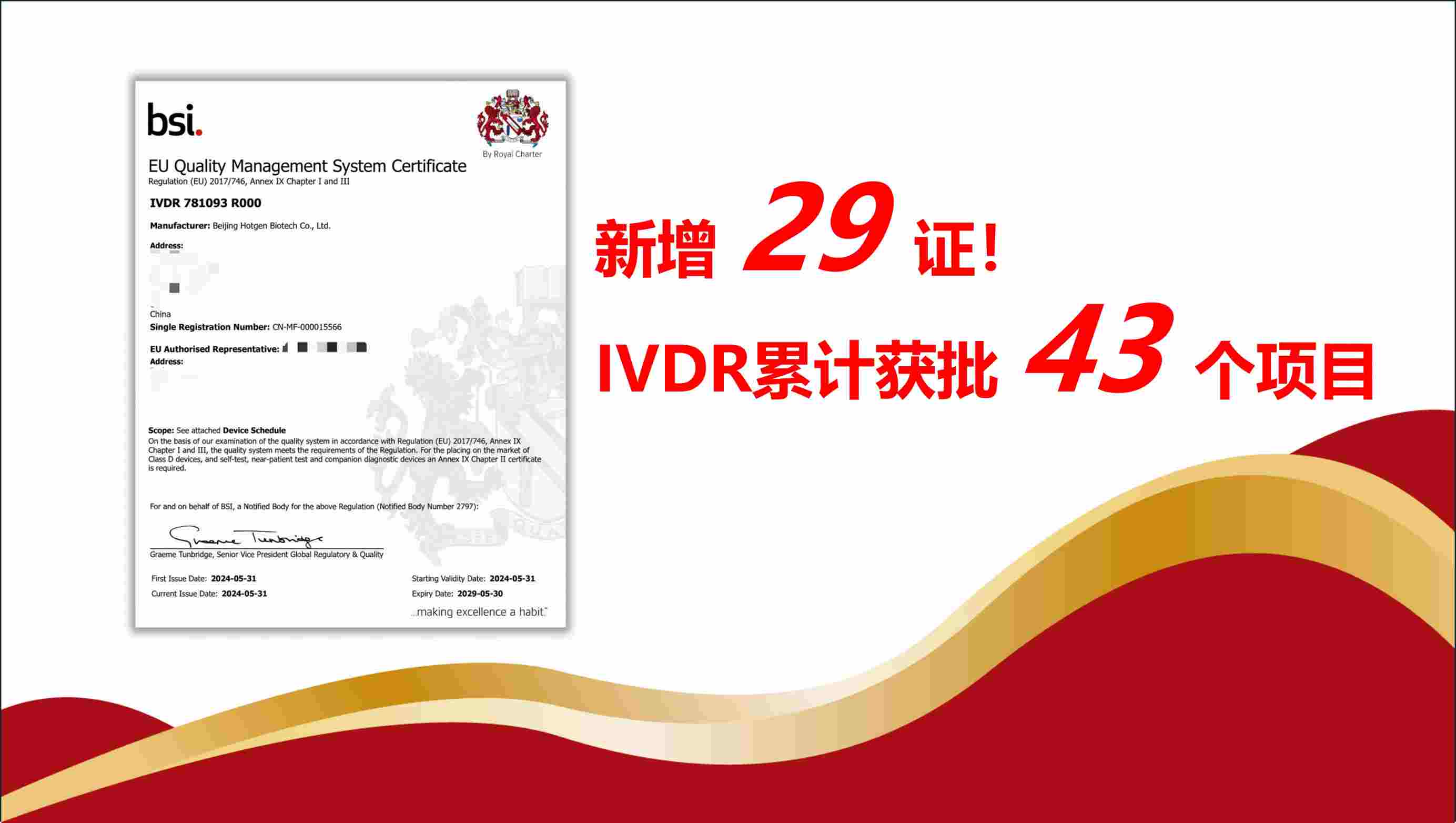 近日,(九游J9)真人游戲第一品牌生物在歐盟體外診斷醫(yī)療器械法規(guī)(IVDR)下新增29款診斷產(chǎn)品的CE認(rèn)證。該CEIVDR證書(shū)由歐洲最有聲望的認(rèn)證機(jī)構(gòu)之一英國(guó)標(biāo)準(zhǔn)協(xié)會(huì)(BSI)頒發(fā)。新批準(zhǔn)的29種診斷試劑覆蓋了(九游J9)真人游戲第一品牌生物旗下全...